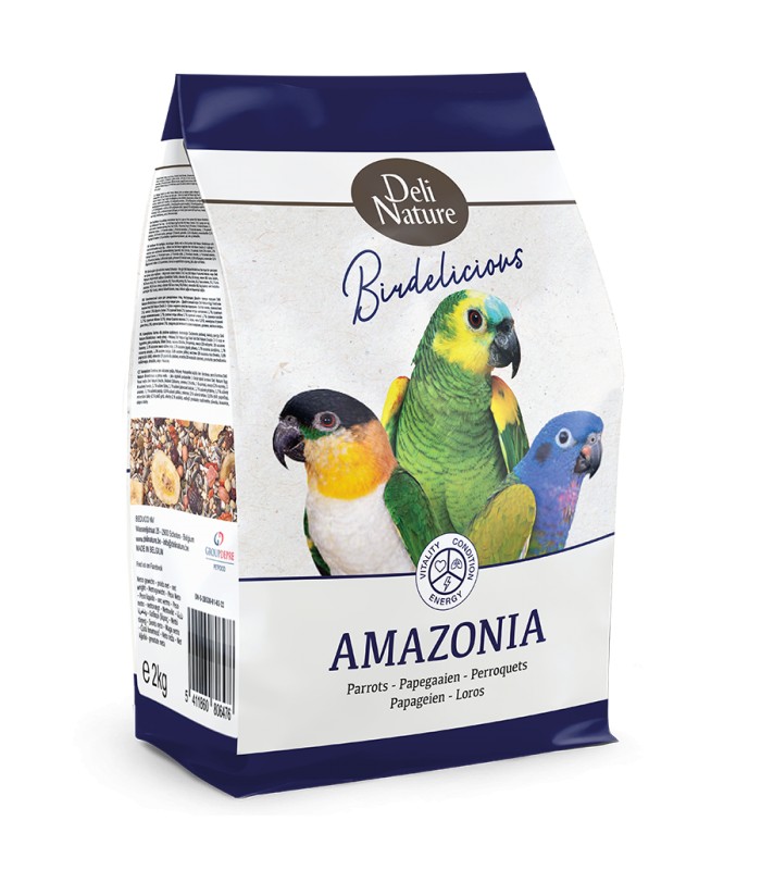 AMAZONAS PARK AMAZONIA is een uitgebalanceerde mengeling voor Amazones en Pionussoorten. Deze lichte zadenmengeling is verrijkt met 9% fruit (papaya, ananas, rozijnen enz.) daar deze vogels zich in de natuur ook graag tegoed doen aan fruit. Verder bevat de mengeling geëxtrudeerde pellets voor extra vitaminen, aminozuren, sporenelementen en met grit voor een optimale spijsvertering.